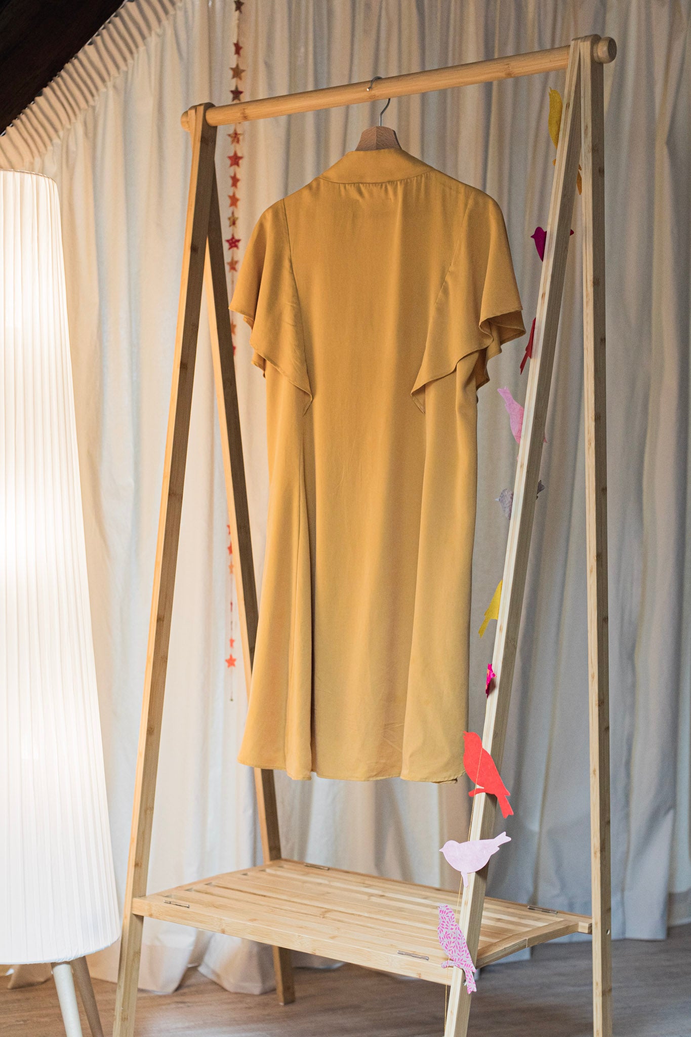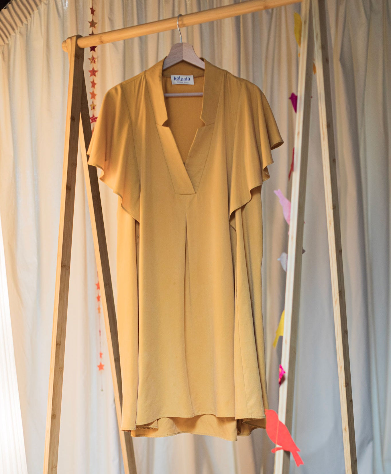 Ce modèle se porte généralement court pour conserver cette légèreté. Elle mesure 88 cm de hauteur pour une taille moyenne (TM). Ses hanches et sa taille ne sont pas marquées, mais si vous préférez la cintrer, une ceinture indépendante vous permet de le faire à votre guise. C’est une robe qui se prête à toutes les occasions : pourquoi ne pas la porter comme une tunique également ?